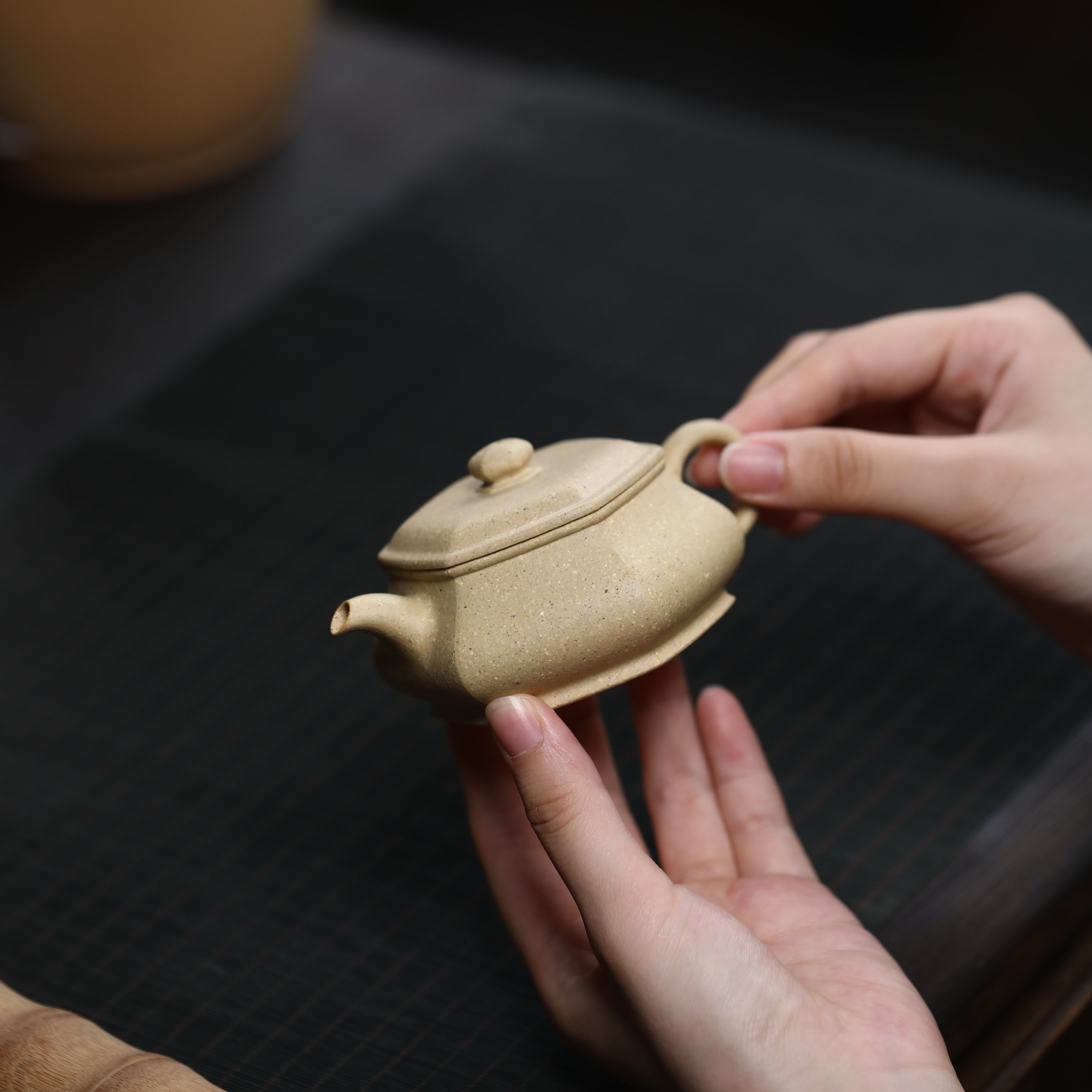 Yixing purple clay pot square six square furnace pot raw ore Benshan green clay 150cc capacity